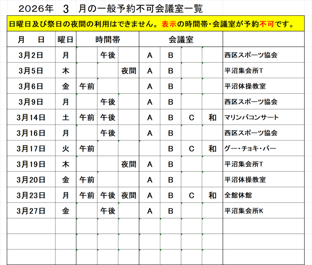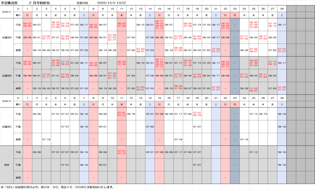 平素より平沼集会所をご利用いただき、誠にありがとうございます。