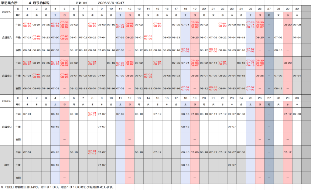 4月利用分予約申し込み状況