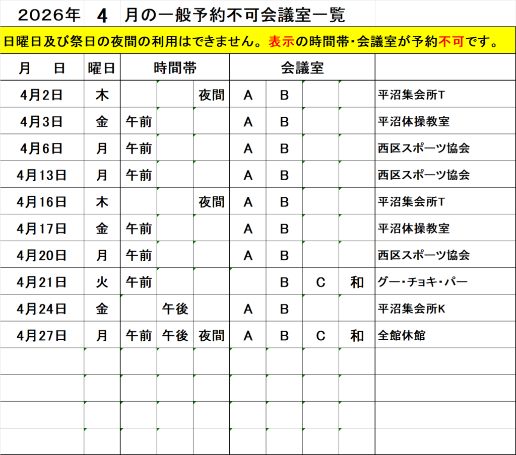 4月利用分の 先行予約申請書受付期間は、以下の通りです。