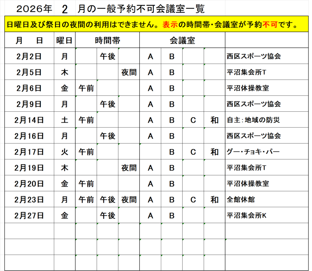 2月利用分の 先行予約申請書受付期間は、以下の通りです。